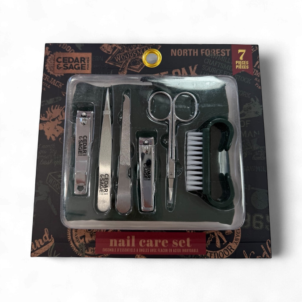 Keep hands neat and presentable with this Cedar & Sage 7 piece nail care set, designed for men who like their grooming simple, tidy and ready to go. Packed in a rugged zip pouch, it includes all the basics for trimming, tidying and cleaning nails at home, at the gym or on the go. A handy, good–looking gift for dads, grandads, brothers or him at Christmas, Father’s Day or birthdays.