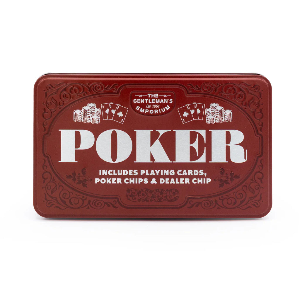 The Gentleman’s Emporium Tin Poker Gift Set is a vintage-style, ready-to-play poker kit in an embossed red tin — ideal for games night, travel or keeping on the desk. Inside is everything needed to deal a hand, making it a great Christmas gift, birthday present or Secret Santa for men who love card games.