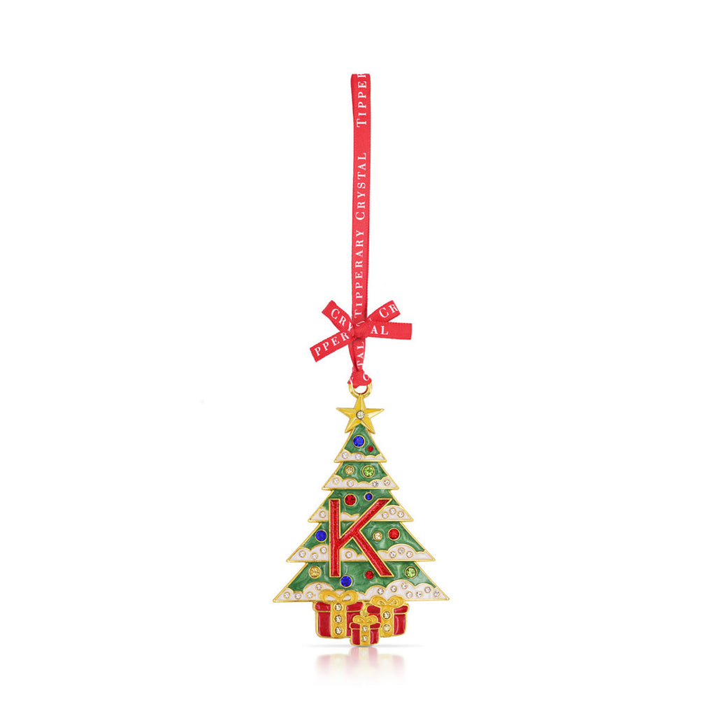 • 1 × Tipperary Crystal Christmas Tree Initial K decoration in rectangular gift box with branded ribbon