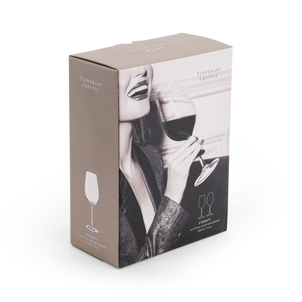 Tipperary Crystal’s Eternity Wine Glasses (450ml) are crafted for clarity, balance and day-to-day durability. The tapered bowl lifts aroma while the sleek stem keeps every pour elegant and easy to hold. Dishwasher safe and abrasion resistant, they’re made for dinner parties and quiet nights alike. A refined gift for couples, weddings, new homes or Christmas.