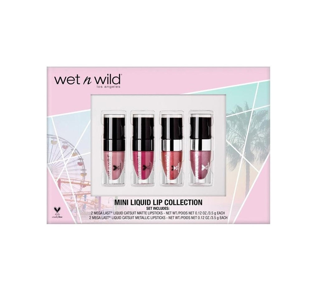 A pocket-sized kit of four long-wearing mini liquid lipsticks — a handy travel set or an easy beauty gift. The collection mixes matte and metallic finishes for day-to-night looks, all in compact, purse-friendly sizes.